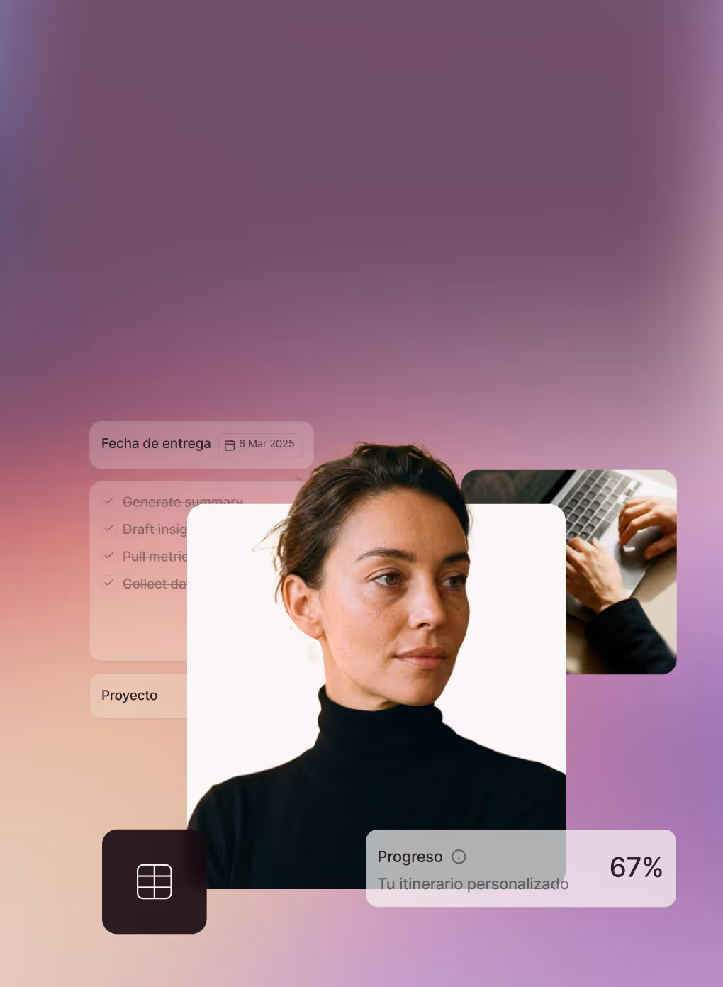La transformación con IA va más allá de un curso. Combinamos aprendizaje guiado, mentoría experta y desarrollo en IA adaptado a cada rol, en cada etapa del proceso.